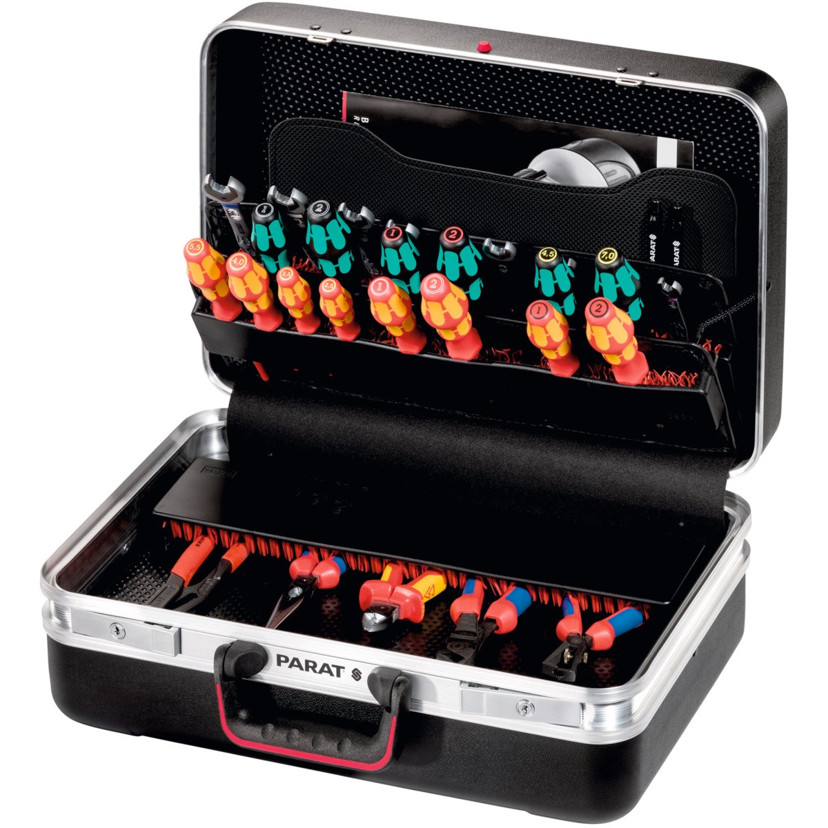内部设施:1 个底部托盘,可细分,包括带有 1 个工具夹的工具面板,作为托盘盖板(编号 692750),1 个带有 2 个工具夹的工具面板(编号 692720)1 个带有 1 个工具夹的工具面板(编号 692730)1 个面板用于插放档案,固定安装于盖子上。
