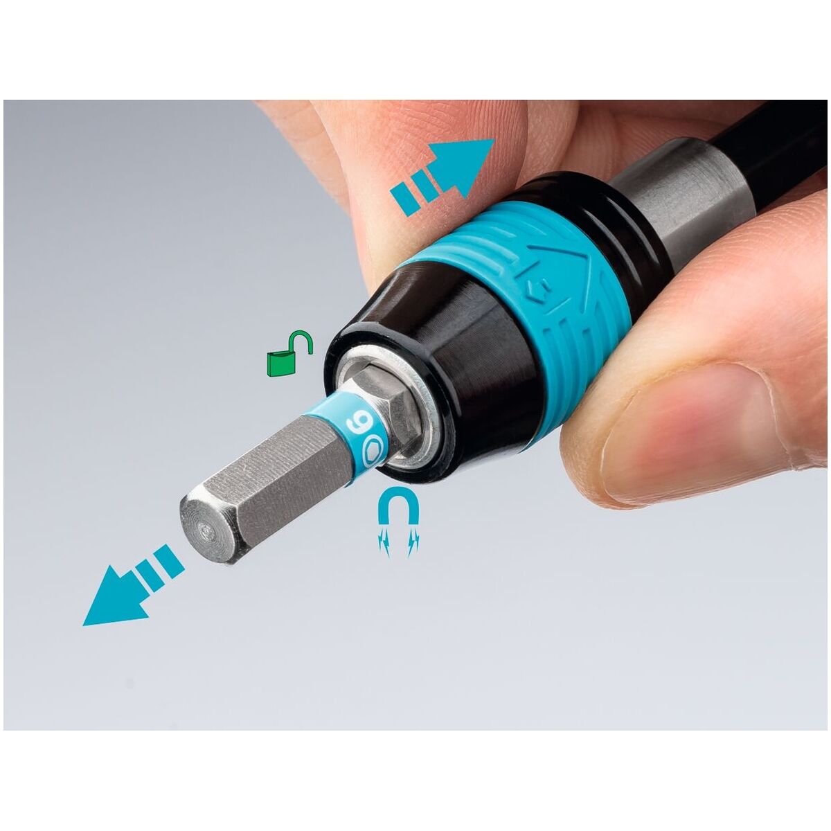 批头支架(1/4 英寸 - D 6.3/F 6.3),带快速锁扣 - 可用单手快速更换批头。