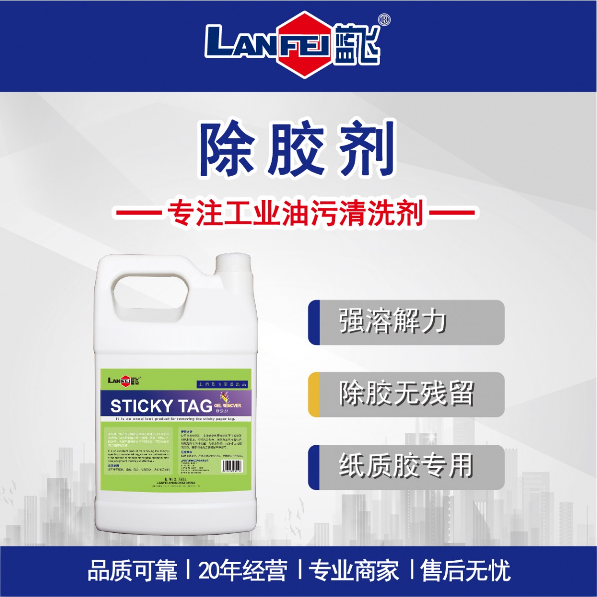 商品名称:Lanfei/蓝飞 除胶剂 Q033-1 12kg 售卖规格:1桶