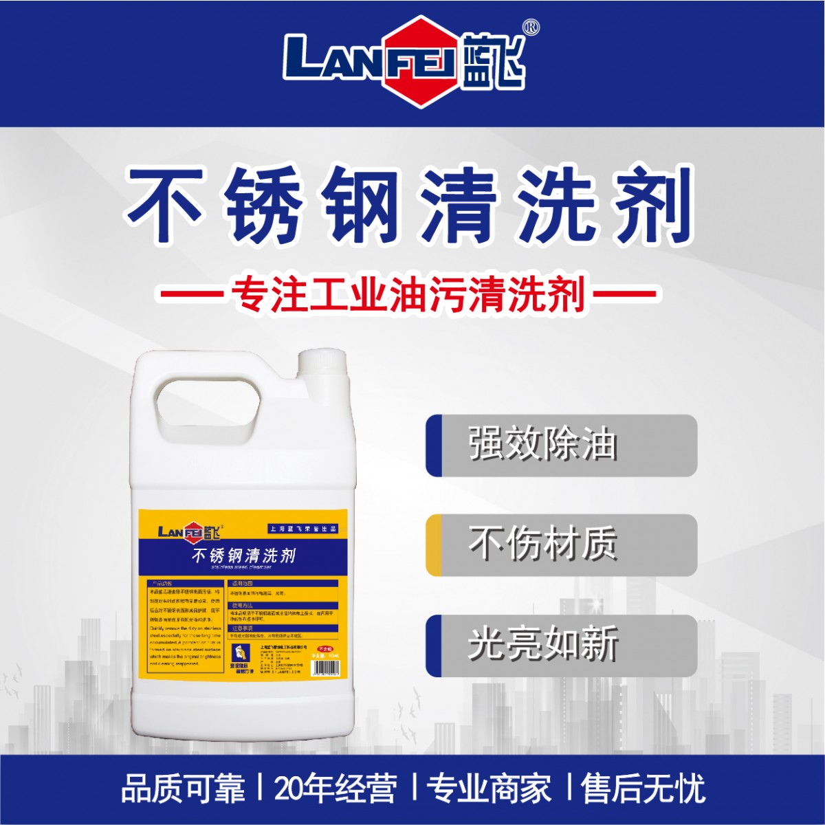 商品名称:Lanfei/蓝飞 不锈钢清洗剂 Q029-1 16.5kg 售卖规格:1桶