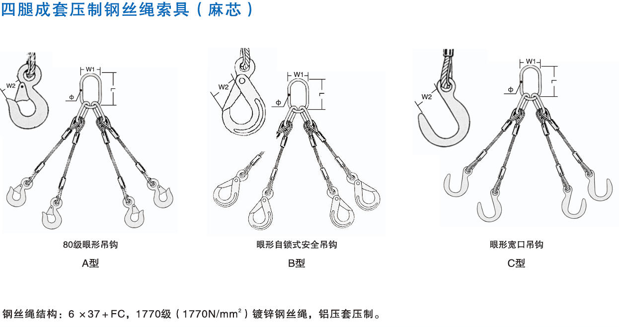 商品名称:Doleco/多来劲 四腿压制钢丝绳索具 售卖规格:1套